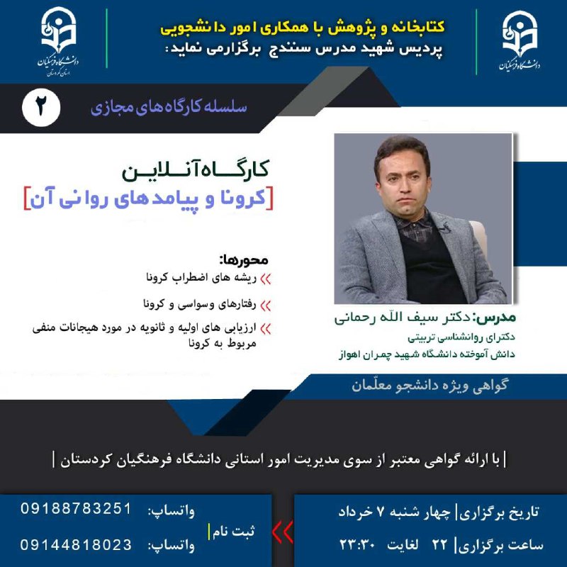 کتابخانه و پژوهش پردیس شهید مدرس سنندج برگزار می نماید: