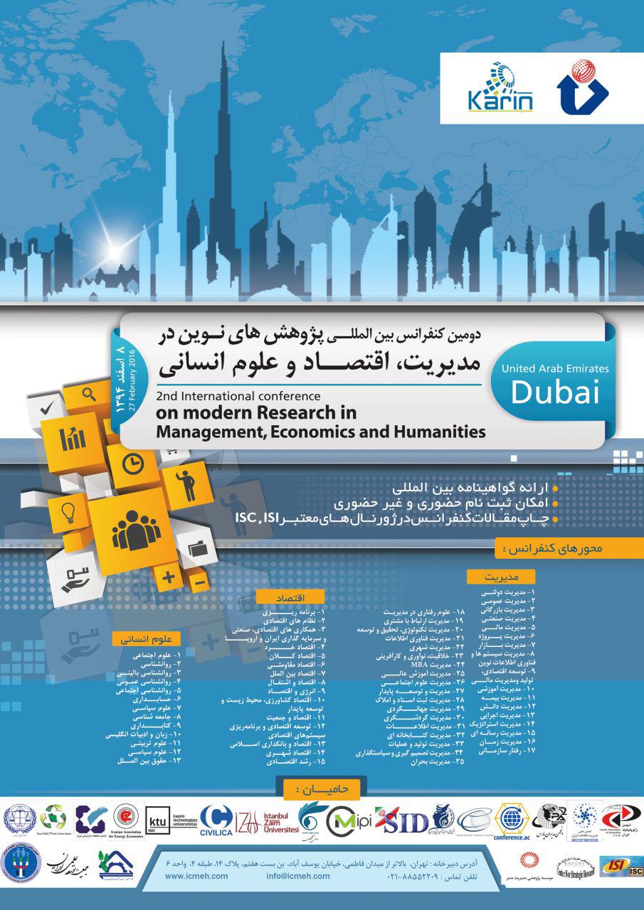 راهیابی مقاله دانشجویان شهید مدرس کردستان در دومین کنفرانس بین المللی پژوهش های نوین در مدیریت