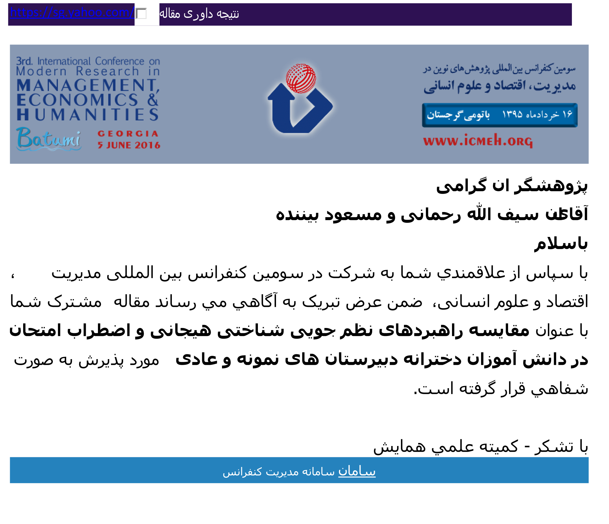 در سومین کنفرانس بین اللملی پژوهش های نوین در مدیریت، اقتصاد و علوم انسانی گرجستان