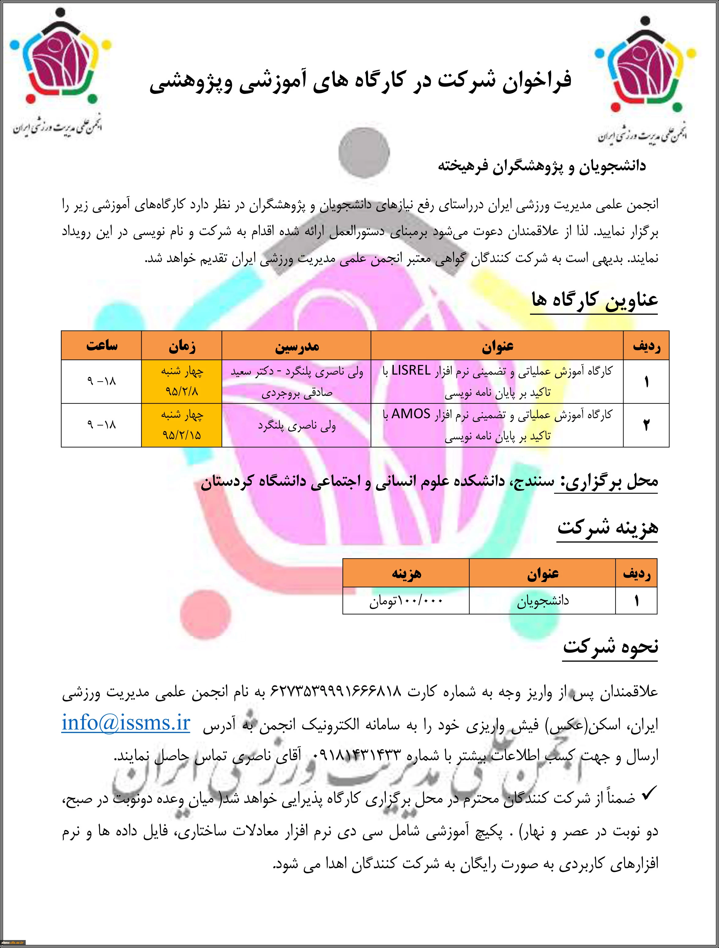 شرایط شرکت در کارگاه های آموزشی وپژوهشی فراخوان انجمن علمی مدیریت ورزشی ایران 2