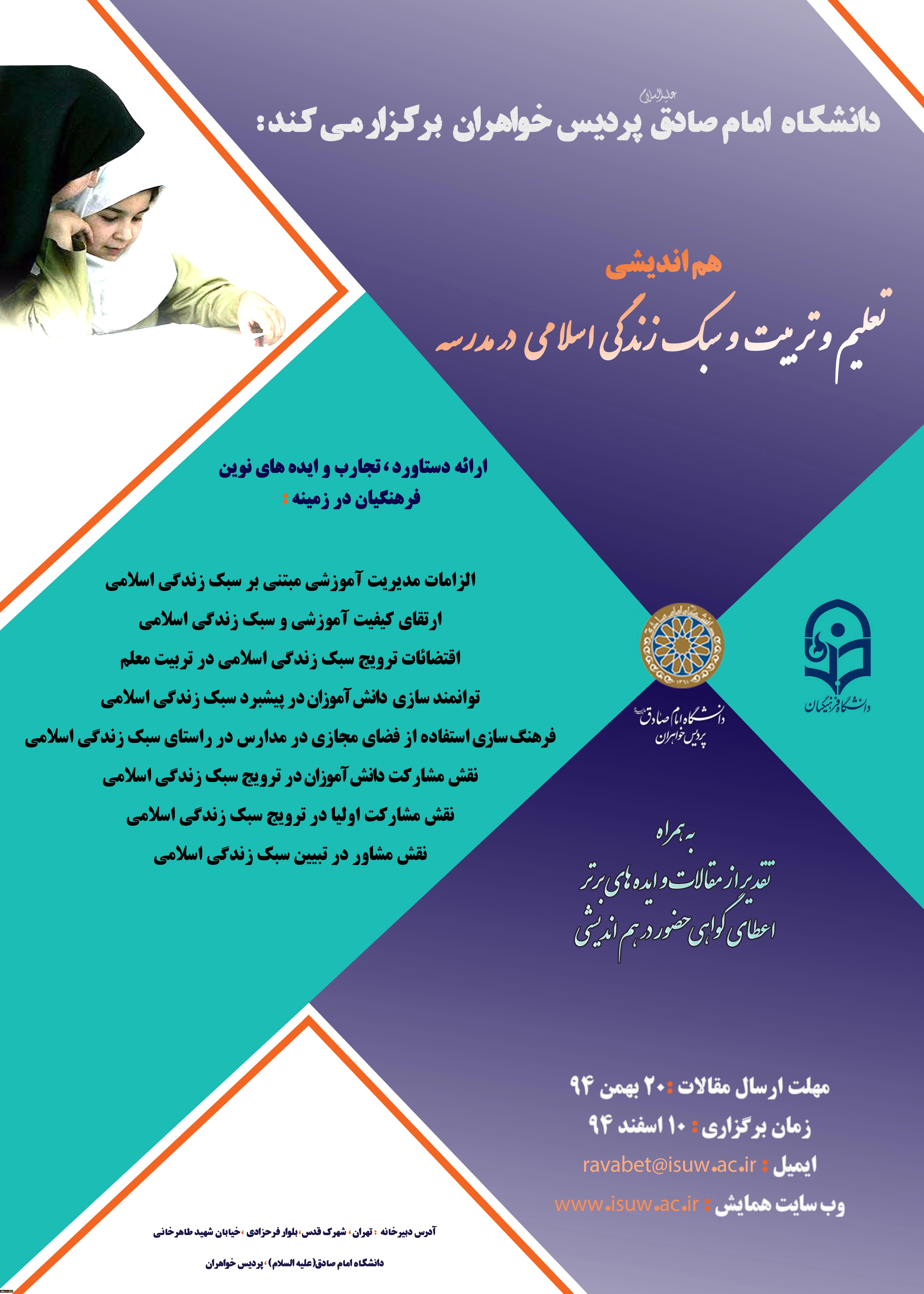 دانشگاه امام صادق (ع ) با مشارکت دانشگاه فرهنگیان در اسفند ماه برگزار می کند: هم اندیشی «تعلیم وتربیت وسبک زندگی اسلامی درمدرسه» 2