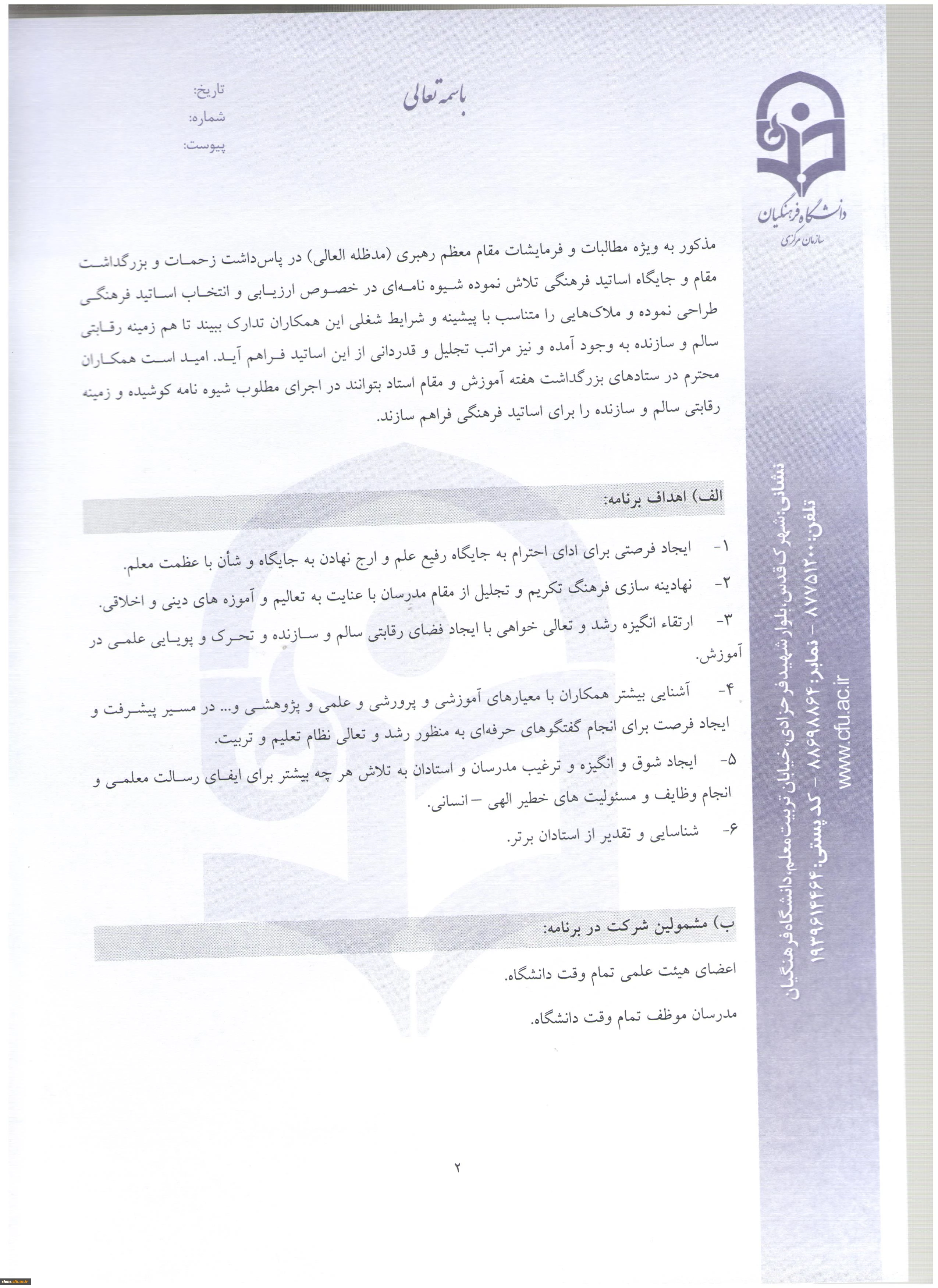 شیوه نامه بزرگداشت هفته آموزش و دستورالعمل انتخاب اعضای هیئت علمی نمونه و پیشکسوت دانشگاه 8