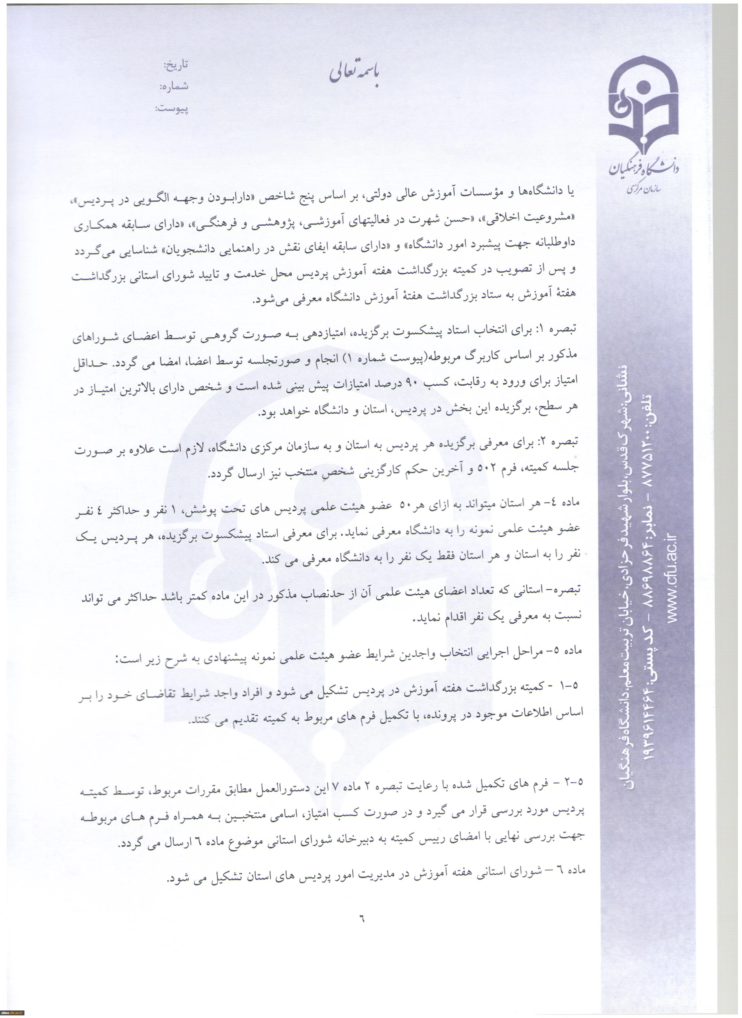 شیوه نامه بزرگداشت هفته آموزش و دستورالعمل انتخاب اعضای هیئت علمی نمونه و پیشکسوت دانشگاه 12