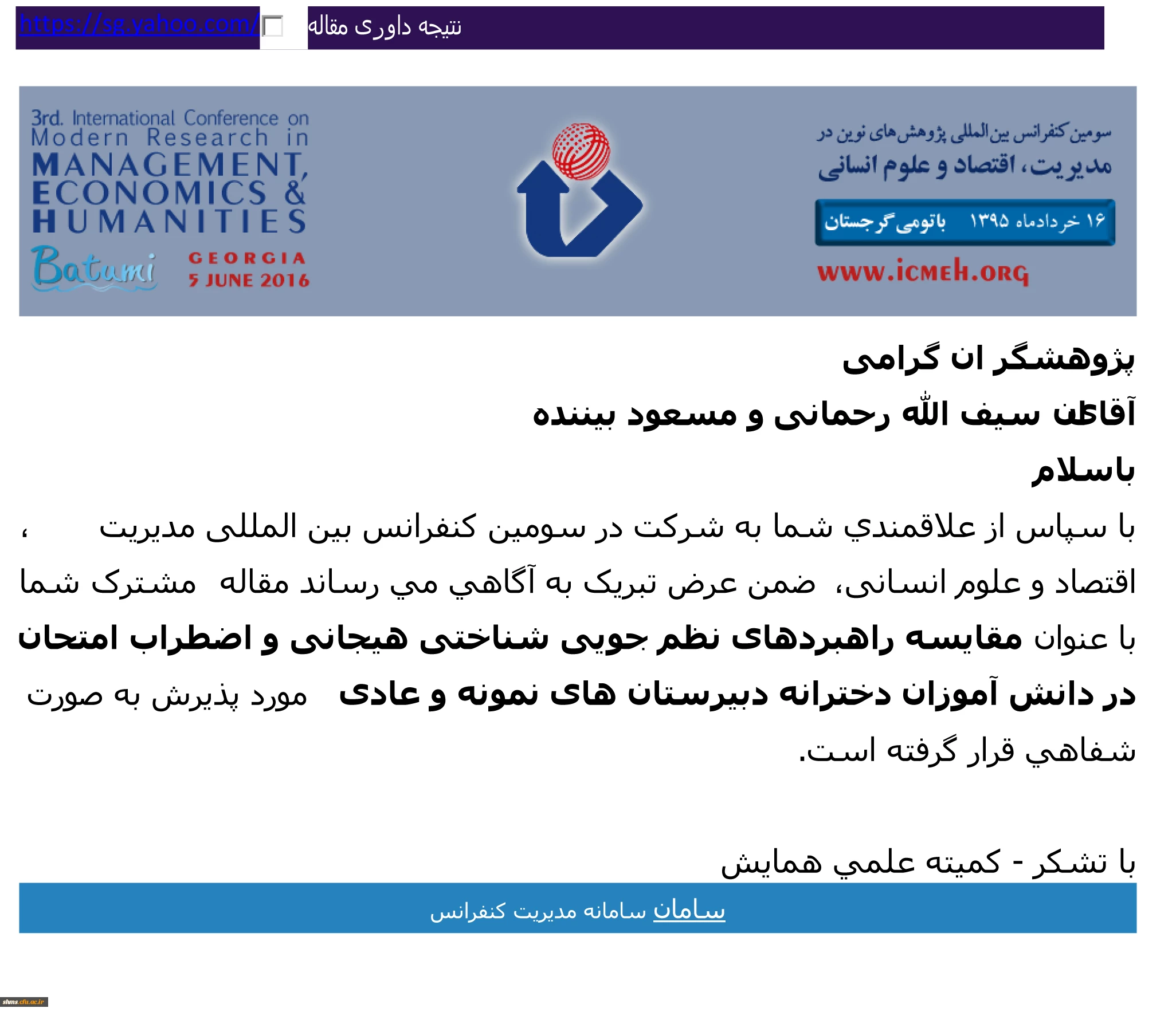پذیرش مقاله اساتید دانشگاه فرهنگیان کردستان : در سومین کنفرانس بین اللملی پژوهش های نوین در مدیریت، اقتصاد و علوم انسانی گرجستان 3