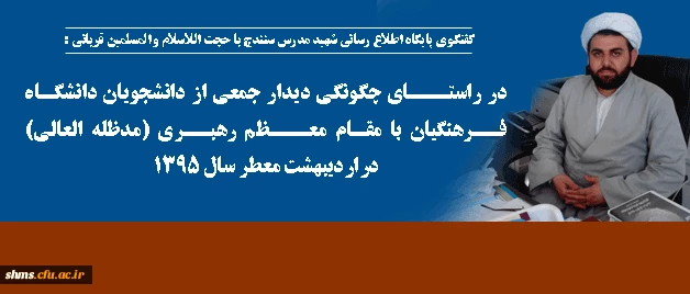 حجت اللاسلام و المسلمین قربانی در گفتگو با پایگاه اطلاع رسانی شهید مدرس کردستان: در راستای دیدار جمعی از دانشجویان دانشگاه فرهنگیان با مقام معظم رهبری (مدظله العالی)چنین گفت: 2