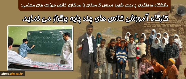 دانشگاه فرهنگیان پردیس شهید مدرس کردستان با همکاری کانون مهارت های معلمی: به منظور آشنایی دانشجو معلمان کارگاه آموزشی کلاس های چند پایه را برگزار می نماید. 2