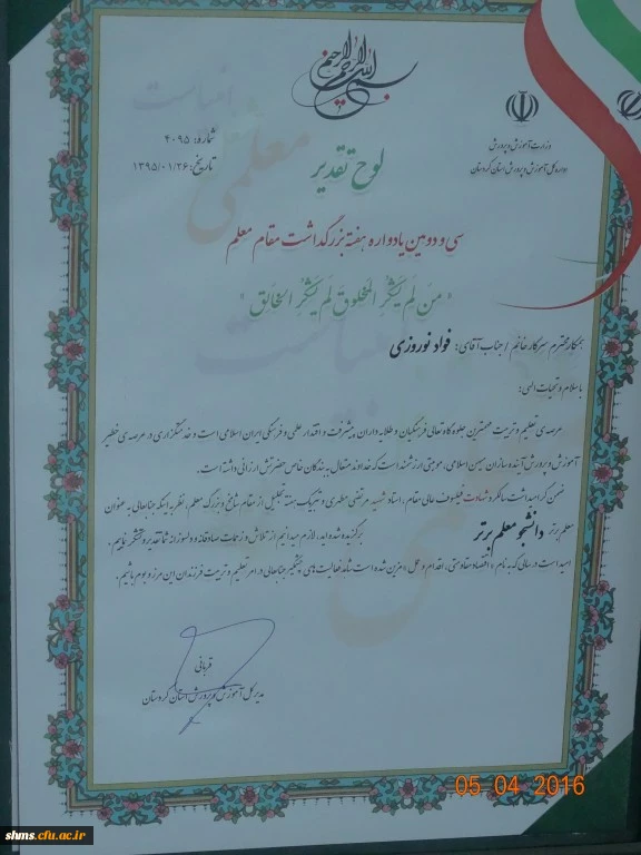 تجلیل از دانشجو معلمان برتر استانی : در سی و دومین یادواره بزرگداشت مقام معلم و استاد شهید مرتضی مطهری استان کردستان 5