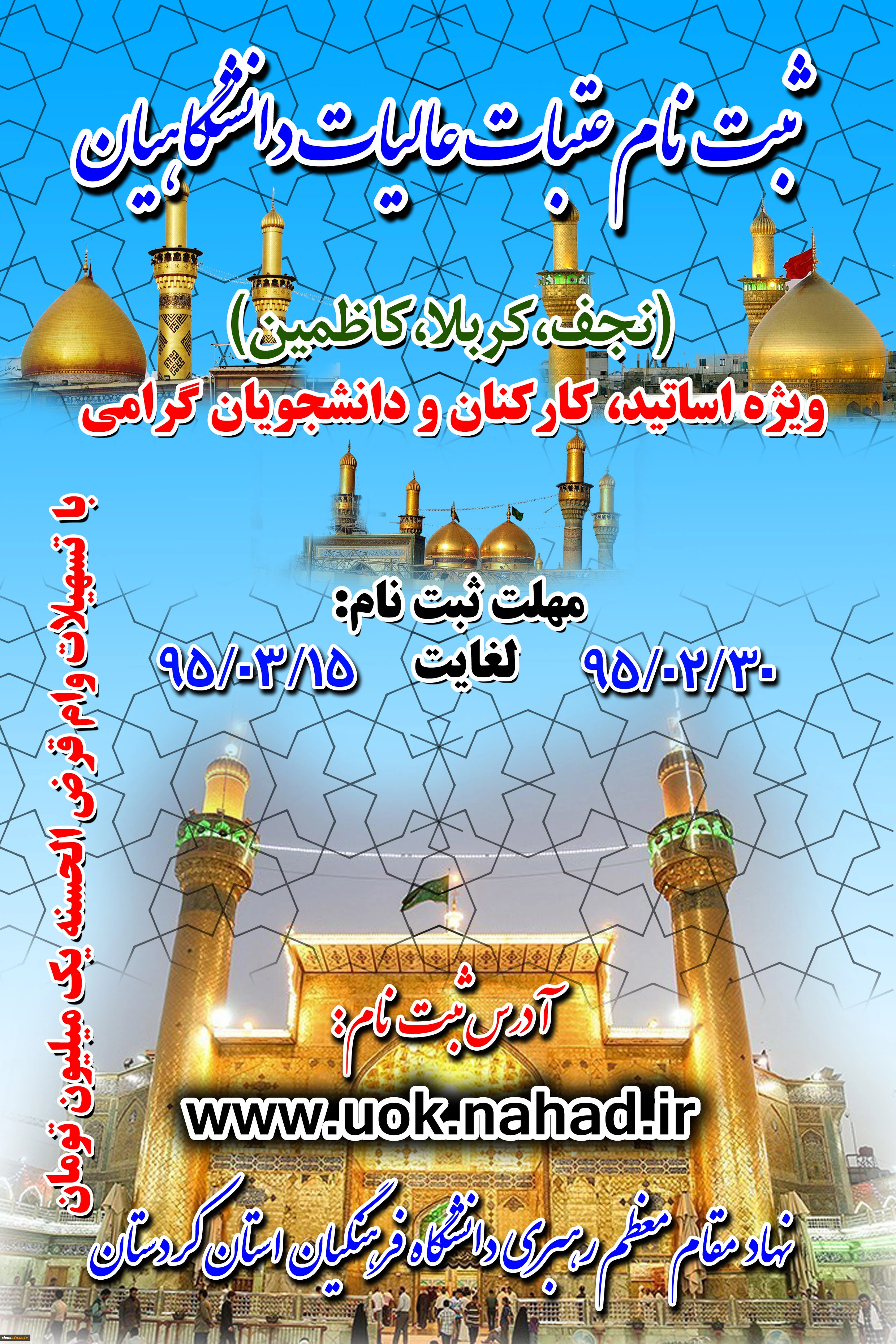 امتیاز دهید : ثبت نام عتبات عالیات دانشگاهیان: ویژه اساتید، کارکنان و دانشجویان گرامی 3 شنبه 1 خرداد 1395 ساعت 16:29