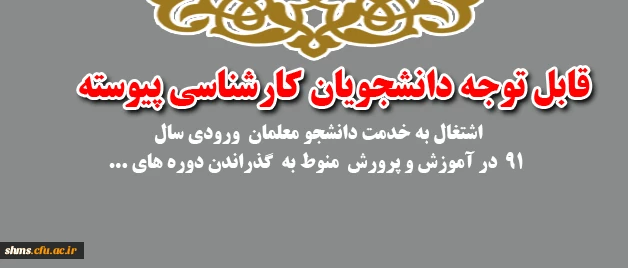 اطلاعیه / قابل توجه دانشجویان پیوسته: اشتغال به خدمت دانشجو معلمان ورودی سال 91 در آموزش و پرورش منوط به گذراندن ... 2