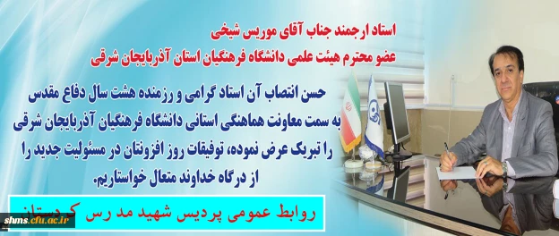 امتیاز دهید : تبریک: انتصاب ریاست اسبق شهید مدرس کردستان به عنوان معاونت هماهنگی استانی آذربایجان شرقی 2 شنبه 15 خرداد 1395 ساعت 21:45