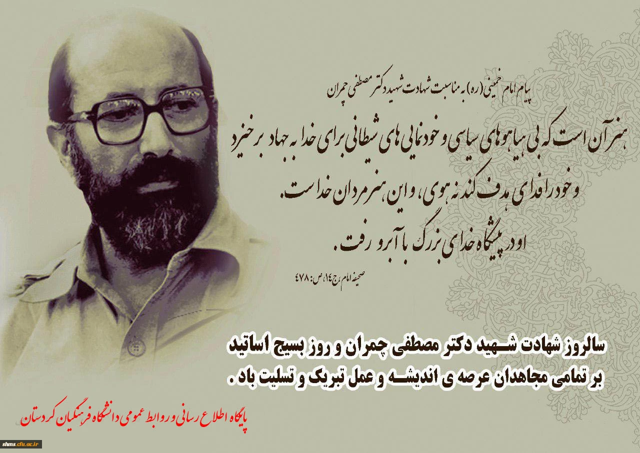 امتیاز دهید : سالروز شهادت شهید دکتر مصطفی چمران و روز بسیج اساتید گرامی باد. 3 دوشنبه 31 خرداد 1395 ساعت 14:15