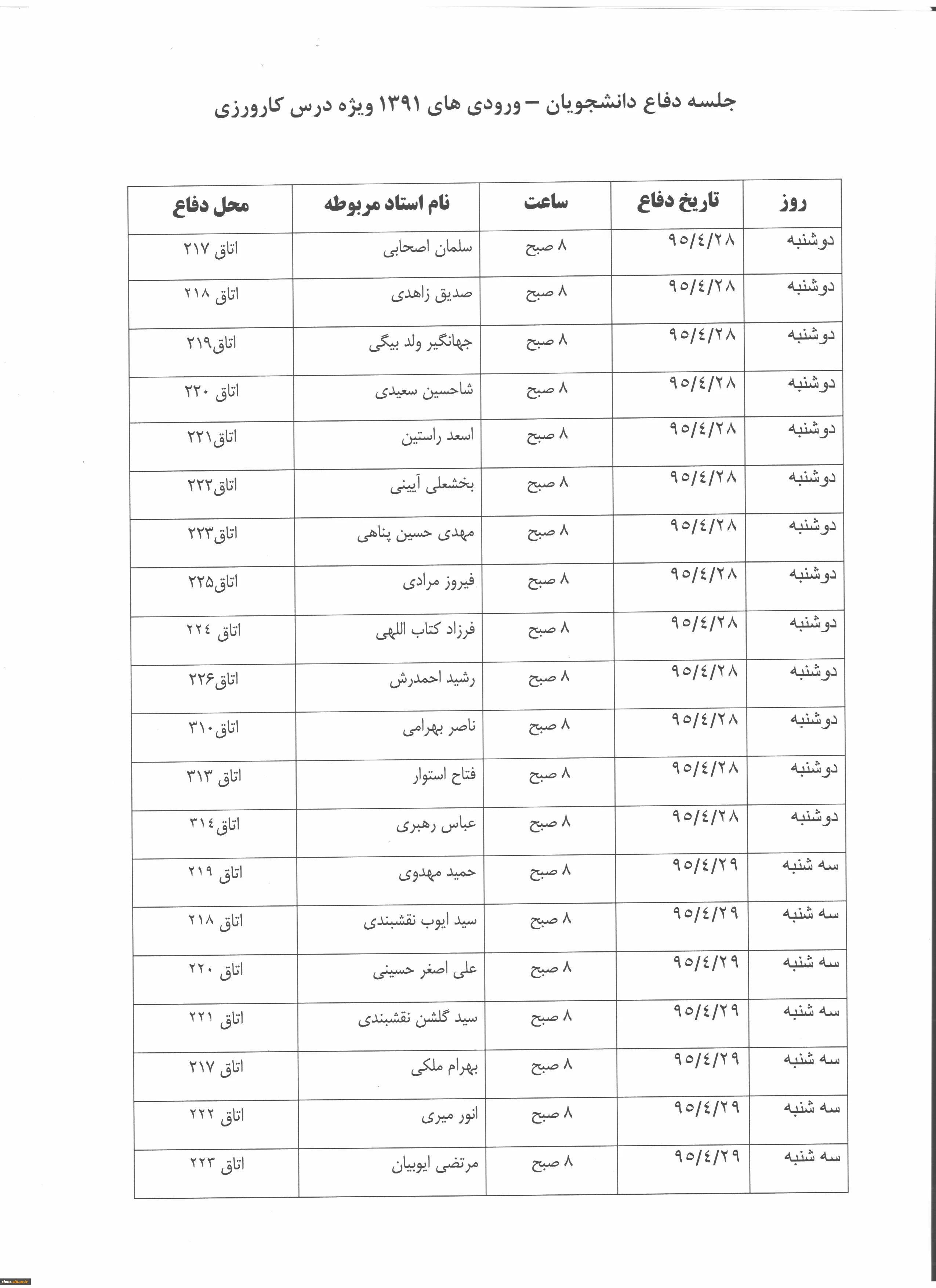 جدول زمان بندی دفاع دانشجویان کاروز ورودی 91 2