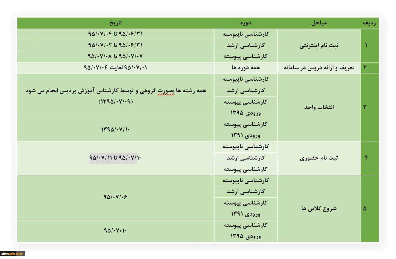 اطلاعیه زمان ثبت نام (اینترنتی و حضوری) و انتخاب واحد 2