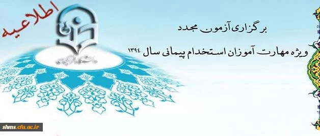 امتیاز دهید : اطلاعیه برگزاری آزمون مجدد ویژه مهارت آموزان استخدام پیمانی سال 1394 2 یکشنبه 16 آبان 1395 ساعت 12:12