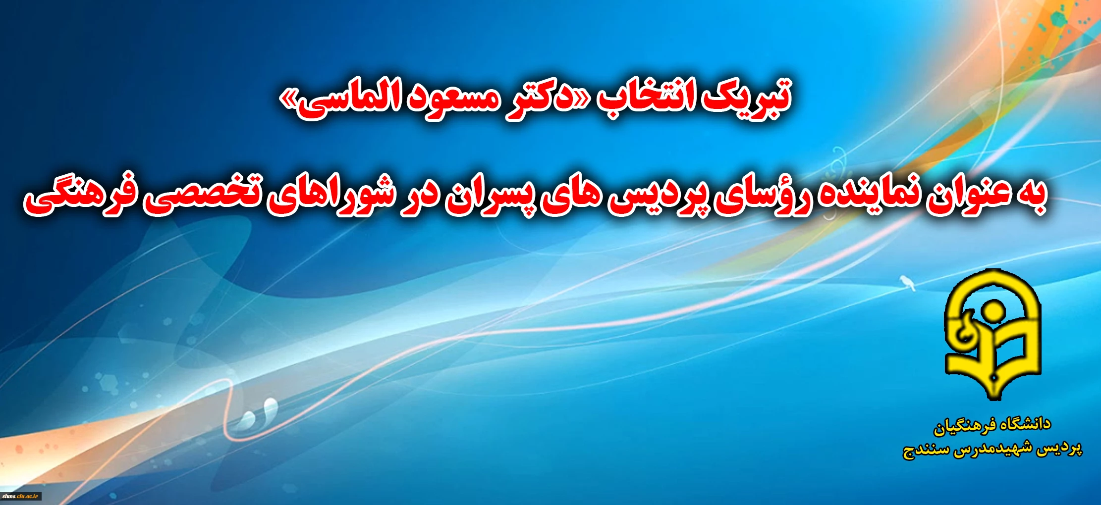 پیام تبریک انتخاب جناب آقای دکتر مسعود الماسی به عنوان نماینده رؤسای پردیس های پسران در شوراهای تخصصی فرهنگی