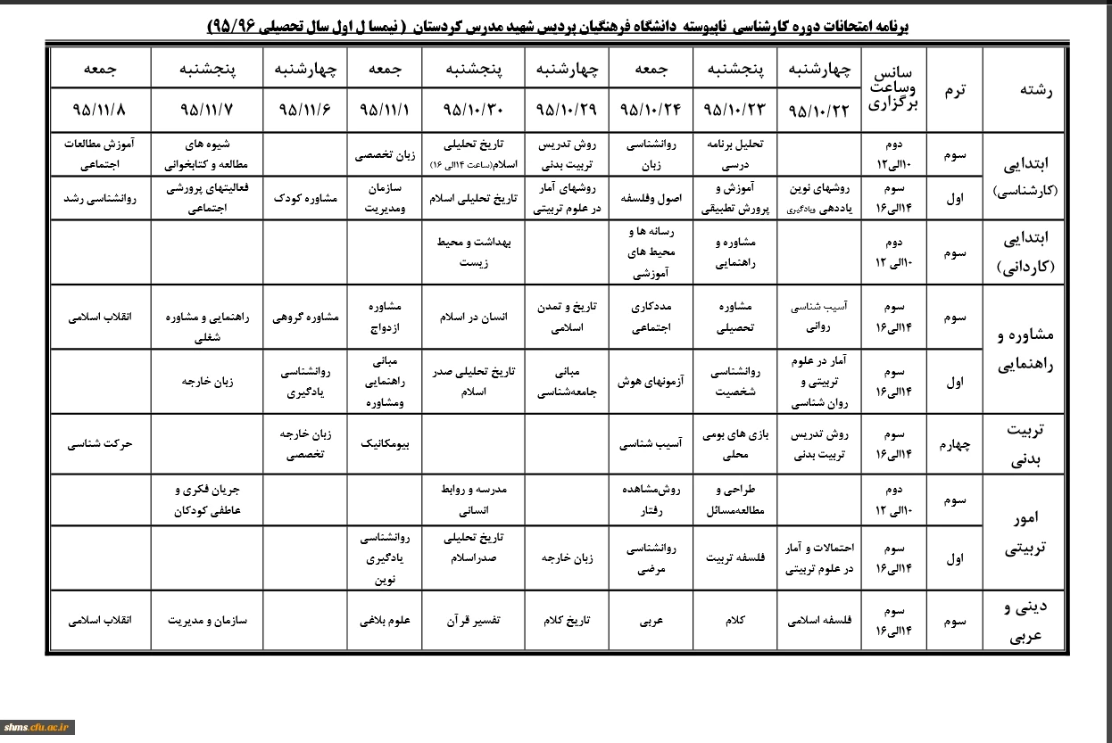 امتیاز دهید : اطلاعیه برنامه امتحانات پایان ترم نیمسال اول ۹۶ – ۹۵ دانشجویان ناپیوسته 2 یکشنبه 26 دی 1395 ساعت 21:14