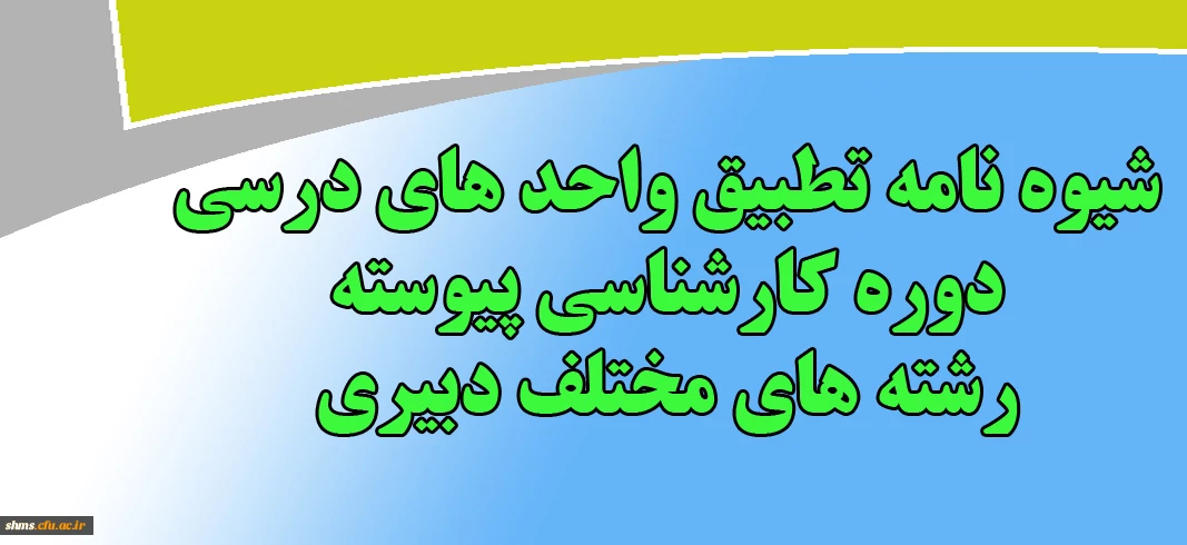 امتیاز دهید : اطلاعیه آموزشی: شیوه نامه تطبیق واحد های درسی دوره کارشناسی پیوسته رشته های مختلف دبیری 2 یکشنبه 11 تیر 1396 ساعت 8:26