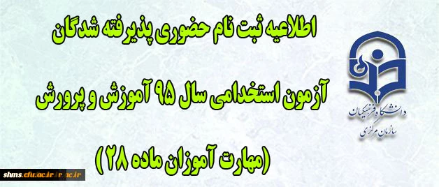 اطلاعیه ثبت نام حضوری پذیرفته شدگان آزمون استخدامی سال 95 آموزش و پرورش (مهارت آموزان ماده 28 ) در دانشگاه فرهنگیان استان کردستان 2