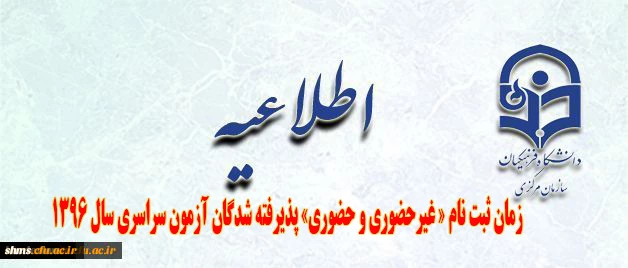 امتیاز دهید : اطلاعیه زمان ثبت نام « غیرحضوری و حضوری» پذیرفته شدگان آزمون سراسری سال 1396 2 یکشنبه 26 شهریور 1396 ساعت 9:37