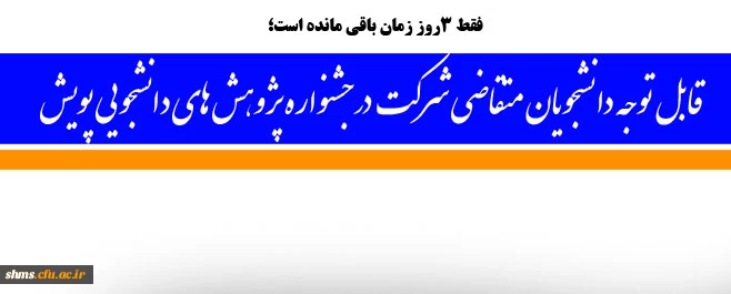 فقط 3 روز زمان باقی مانده است؛ قابل توجه دانشجویان متقاضی شرکت در دومین جشنواره پژوهش های دانشچویی پویش 4