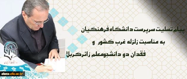 امتیاز دهید : پیام تسلیت سرپرست دانشگاه فرهنگیان درپی زلزله غرب کشور و فقدان دو دانشجومعلم زائرکربلا 2 سهشنبه 23 آبان 1396 ساعت 20:31