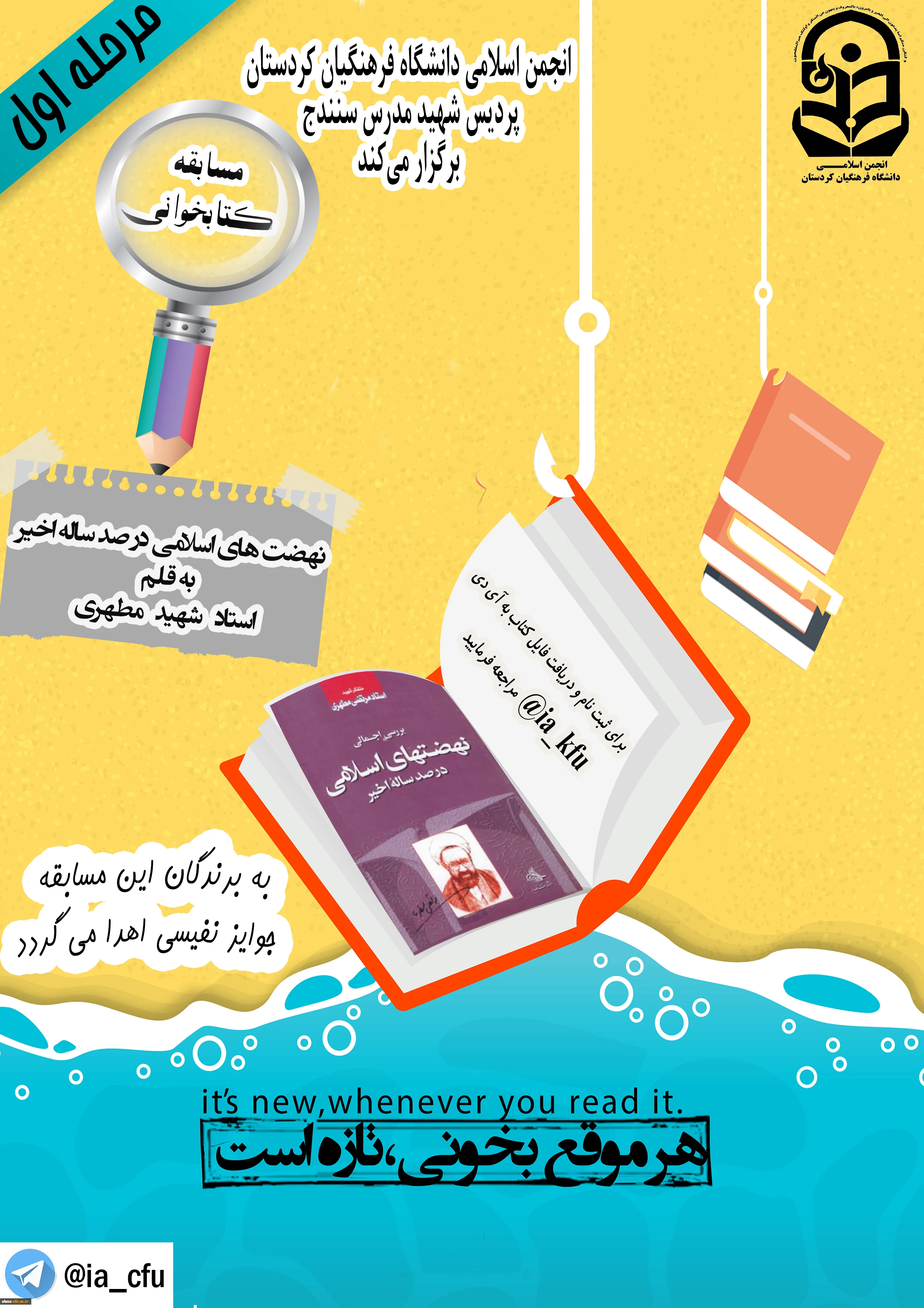 انجمن اسلامی دانشگاه فرهنگیان استان کردستان برگزار می نماید. مسابقه کتابخوانی از کتاب نهضت های اخیر در صد ساله اخیر به قلم استاد شهید مطهری 2
