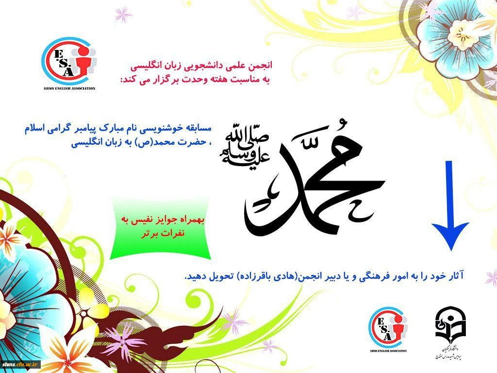 مسابقه خوشنویسی "اسم مبارک پیامبر اعظم به زبان انگلیسی"بمناسبت هفته وحدت