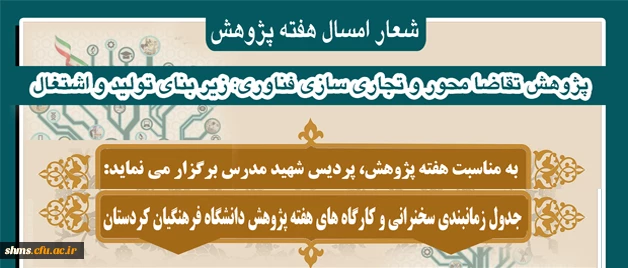 هفته پژوهش گرامی باد جدول زمان بندی کارگاه ها و سخرانی های دانشگاه فرهنگیان پردیس شهید مدرس کردستان 2