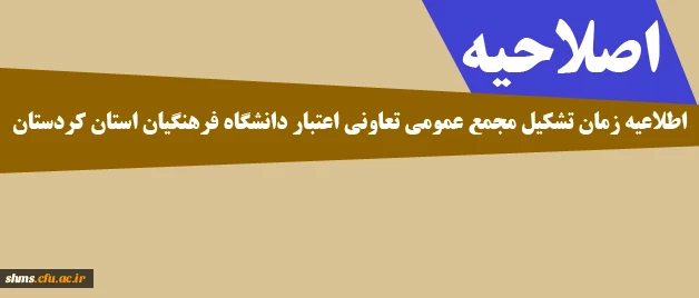 امتیاز دهید : اصلاحیه اطلاعیه زمان تشکیل مجمع عمومی تعاونی اعتبار دانشگاه فرهنگیان استان کردستان 2 دوشنبه 11 دی 1396 ساعت 11:19