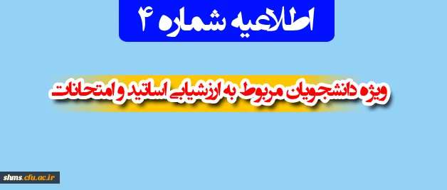 امتیاز دهید : اطلاعیه شماره 4 ویژه دانشجویان مربوط به ارزشیابی اساتید و امتحانات 2 چهارشنبه 20 دی 1396 ساعت 10:03