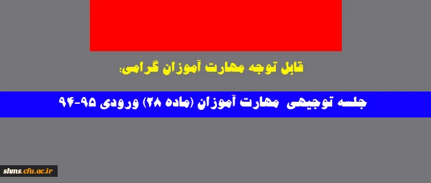 امتیاز دهید : قابل توجه مهارت آموزان گرامی؛ جلسه توجیهی مهارت آموزان (ماده 28) ورودی 94-95 2 سهشنبه 26 دی 1396 ساعت 14:15