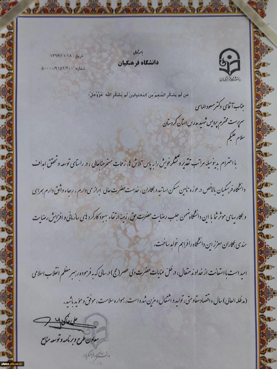 امتیاز دهید : تجلیل دکتر علی خاکی؛ از سرپرست پردیس شهید مدرس کردستان 2 پنجشنبه 19 بهمن 1396 ساعت 8:01
