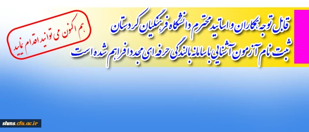 قابل توجه همکاران و اساتید دانشگاه فرهنگیان کردستان ثبت نام آزمون آشنایی با سامانه بالندگی حرفه ای مجددا فراهم شده است 2