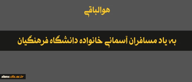 امتیاز دهید : هوالباقی به یاد مسافران آسمانی خانواده دانشگاه فرهنگیان 2 چهارشنبه 8 فروردین 1397 ساعت 20:57