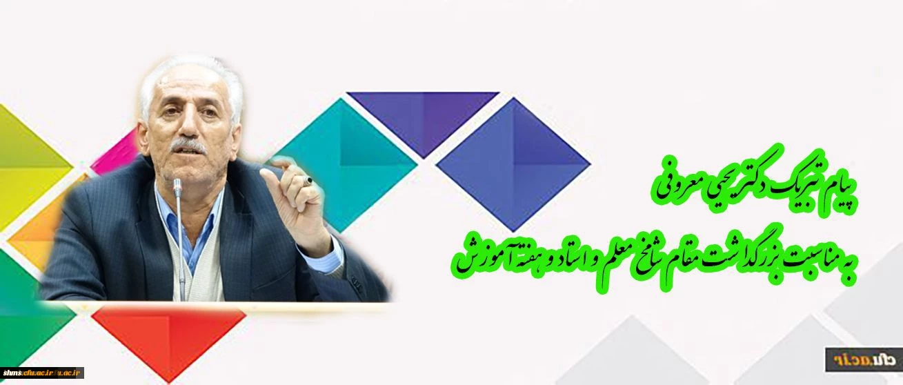 امتیاز دهید : پیام دکتر معروفی به مناسبت بزرگداشت مقام شامخ معلم و استاد و هفته آموزش 2 چهارشنبه 12 اردیبهشت 1397 ساعت 15:46