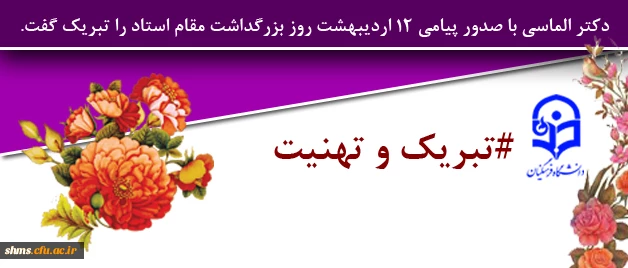 امتیاز دهید : دکتر الماسی با صدور پیامی 12 اردیبهشت روز بزرگداشت مقام استاد را تبریک گفت. 2 چهارشنبه 12 اردیبهشت 1397 ساعت 16:45
