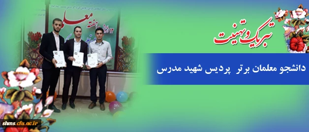 دانشجویان هژیر بایزیدی، هادی باقرزاده و آزاد قادری به عنوان دانشجومعلمان برتر سال 1396 برگزیده شدند. 2