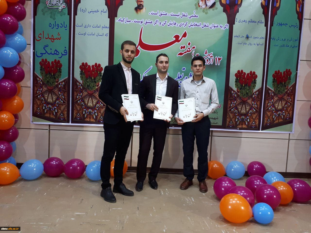 دانشجویان هژیر بایزیدی، هادی باقرزاده و آزاد قادری به عنوان دانشجومعلمان برتر سال 1396 برگزیده شدند. 3