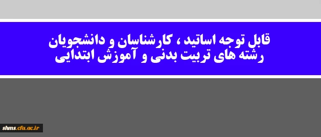 امتیاز دهید : قابل توجه اساتید ، کارشناسان و دانشجویان رشته های تربیت بدنی و آموزش ابتدایی 2 شنبه 5 خرداد 1397 ساعت 23:18
