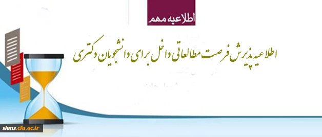 اطلاعیه پذیرش فرصت مطالعاتی ؛ داخل کشور برای دانشجویان دکتری اعضای هیات علمی و غیرهیات علمی شاغل به تحصیل در دوره دکتری 2