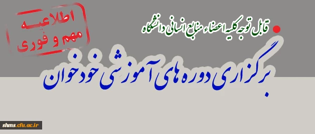 امتیاز دهید : قابل توجه کلیه اعضاء منابع انسانی دانشگاه برگزاری دوره های آموزشی خودخوان 3 چهارشنبه 6 تیر 1397 ساعت 12:59