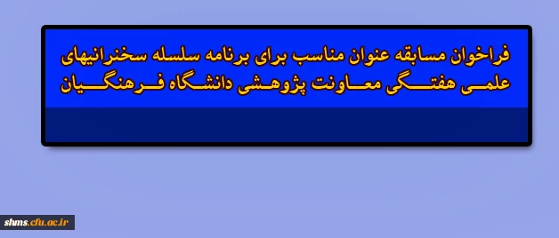یاد آوری فراخوان مسابقه عنوان مناسب برای برنامه سلسله سخنرانیهای علمی هفتگی معاونت پژوهشی دانشگاه فرهنگیان 2