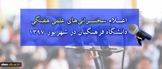 امتیاز دهید : اعلام سخنرانی های علمی هفتگی دانشگاه فرهنگیان در شهریور 1397 2 شنبه 3 شهریور 1397 ساعت 11:53