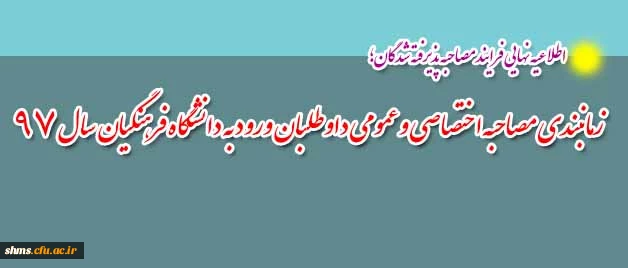 اطلاعیه نهایی فرایند مصاحبه پذیرفته شدگان؛ زمانبندی مصاحبه اختصاصی و عمومی داوطلبان ورود به دانشگاه فرهنگیان سال 97 2