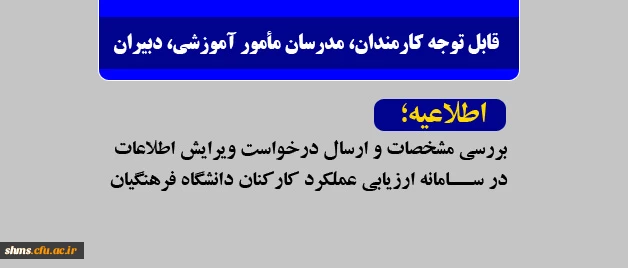 قابل توجه کارمندان، مدرسان مأمور آموزشی، دبیران اطلاعیه بررسی مشخصات و ارسال درخواست ویرایش اطلاعات در سامانه ارزیابی عملکرد کارکنان دانشگاه 3