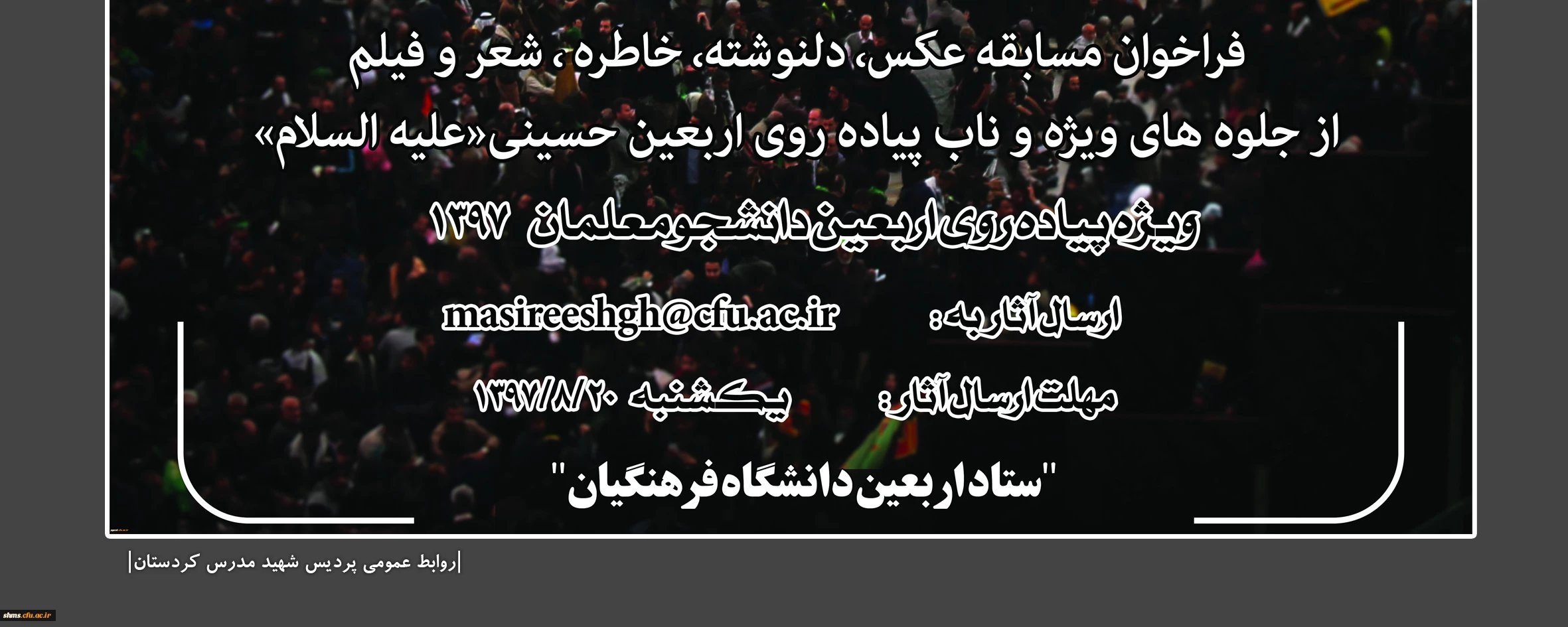 برگزاری مسابقه ای با عنوانمسیرعشق از آثار ارسالی دانشجومعلمان، استادان و کارکنان شرکت کننده در راهپیمایی عظیم معنوی اربعین حسینی(ع) 2