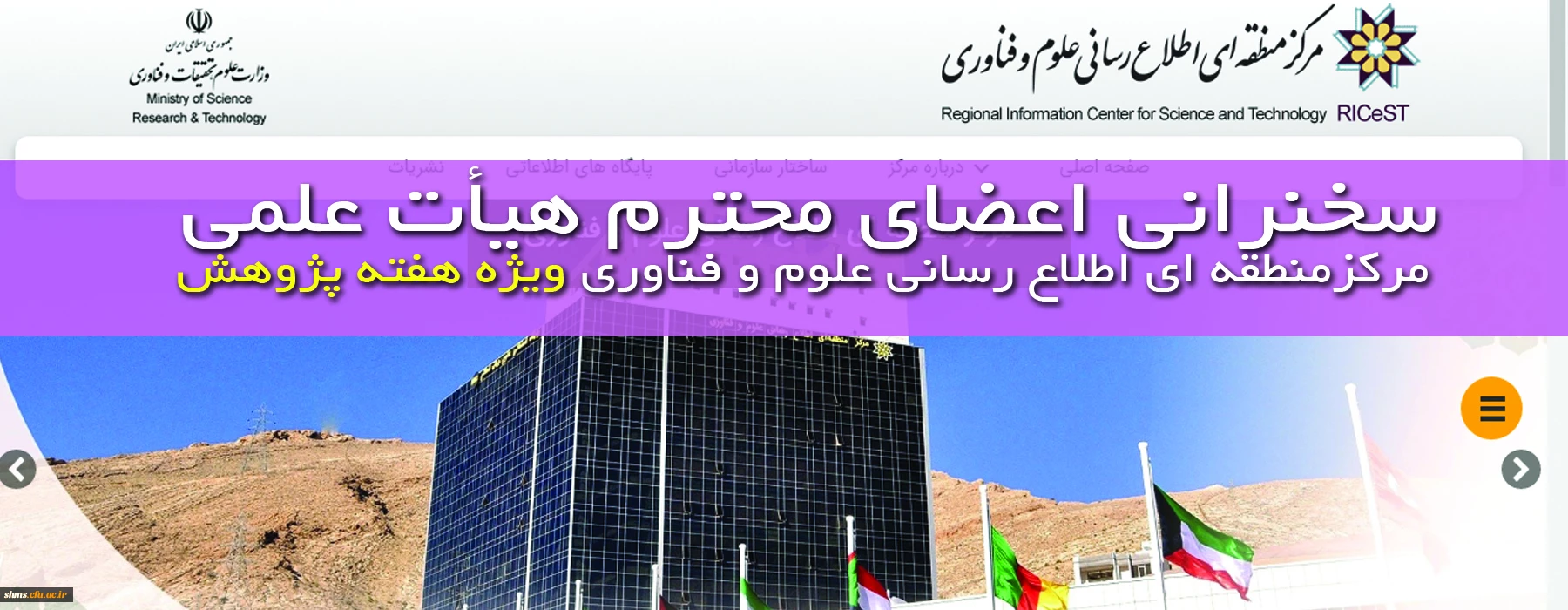 امتیاز دهید : سخنرانی اعضای محترم هیأت علمی مرکزمنطقه ای اطلاع رسانی علوم و فناوری ویژه هفته پژوهش 3 سهشنبه 15 آبان 1397 ساعت 14:23