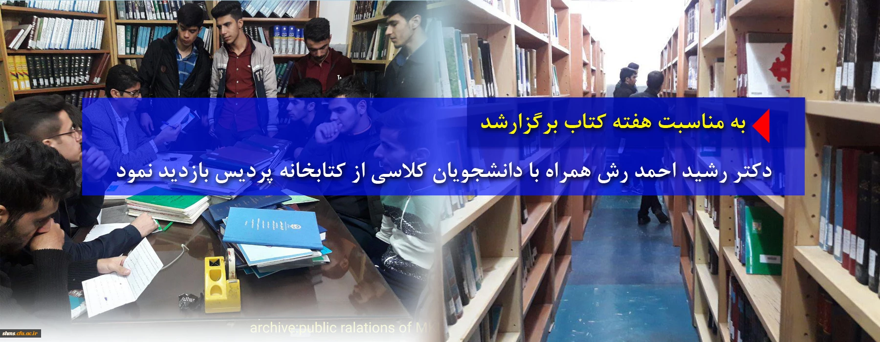به مناسبت هفته کتاب برگزارشد دکتر رشید احمد رش همراه با دانشجویان کلاسی از کتابخانه پردیس بازدید نمود 2