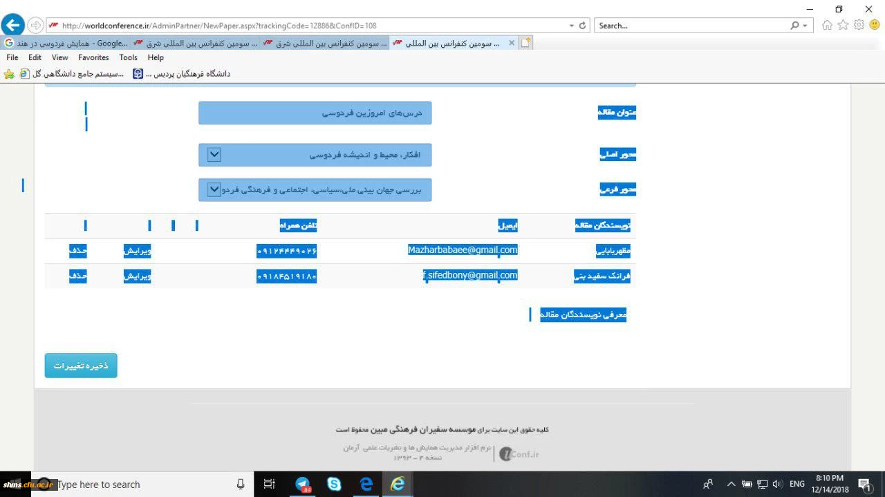 پذیرش و چاپ مقاله ی استاد دانشگاه فرهنگیان کردستان، پردیس شهید مدرس سنندج؛ دکتر مظهر بابایی با همکاری خانم فرانک سفید بنی در "سومین کنفرانس بین المللی شرق شناسی- فردوسی و فرهنگ و ادب فارسی". که در دانشگاه دهلی هند 3