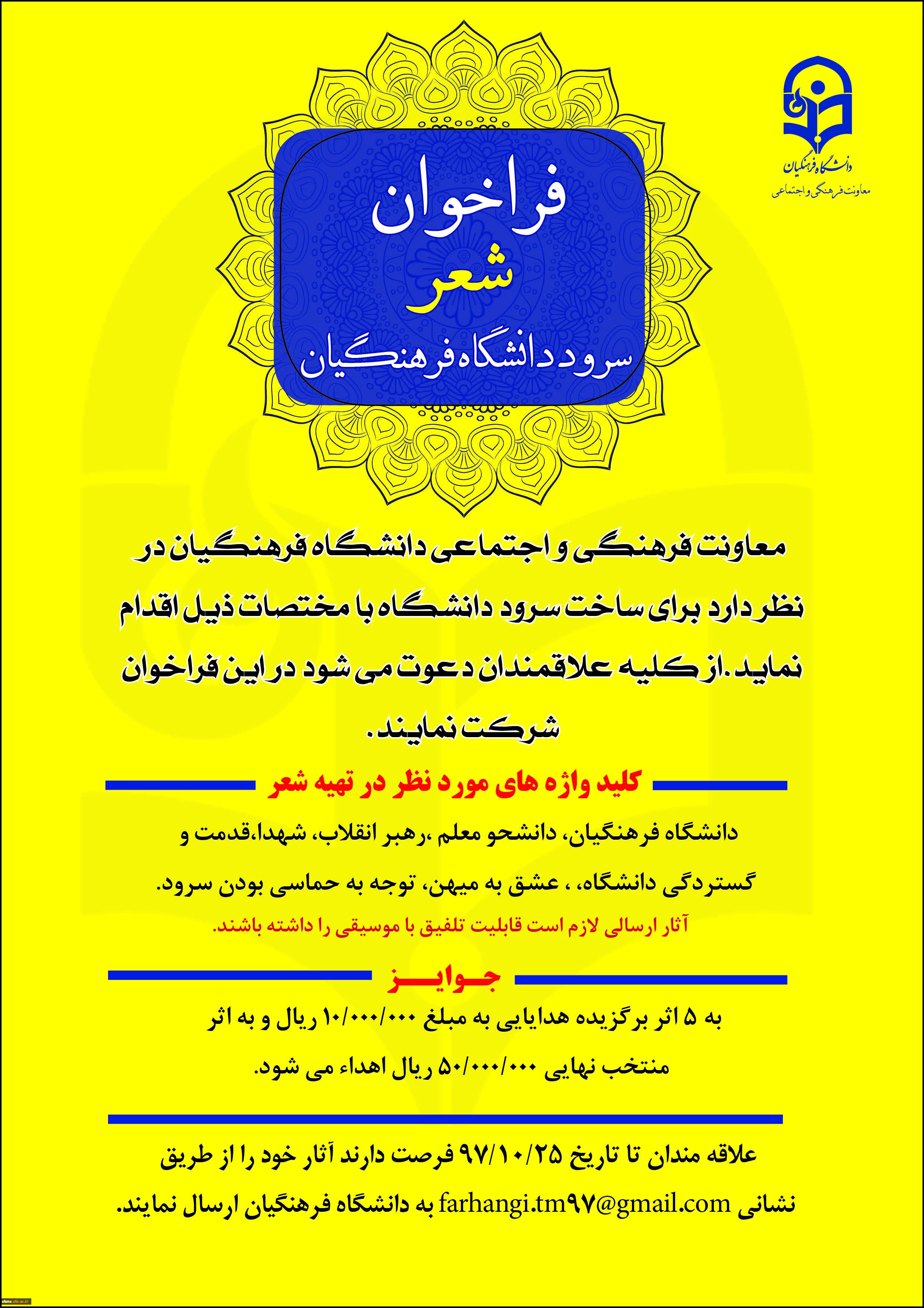 فراخوان شعر سرود دانشگاه فرهنگیان 2